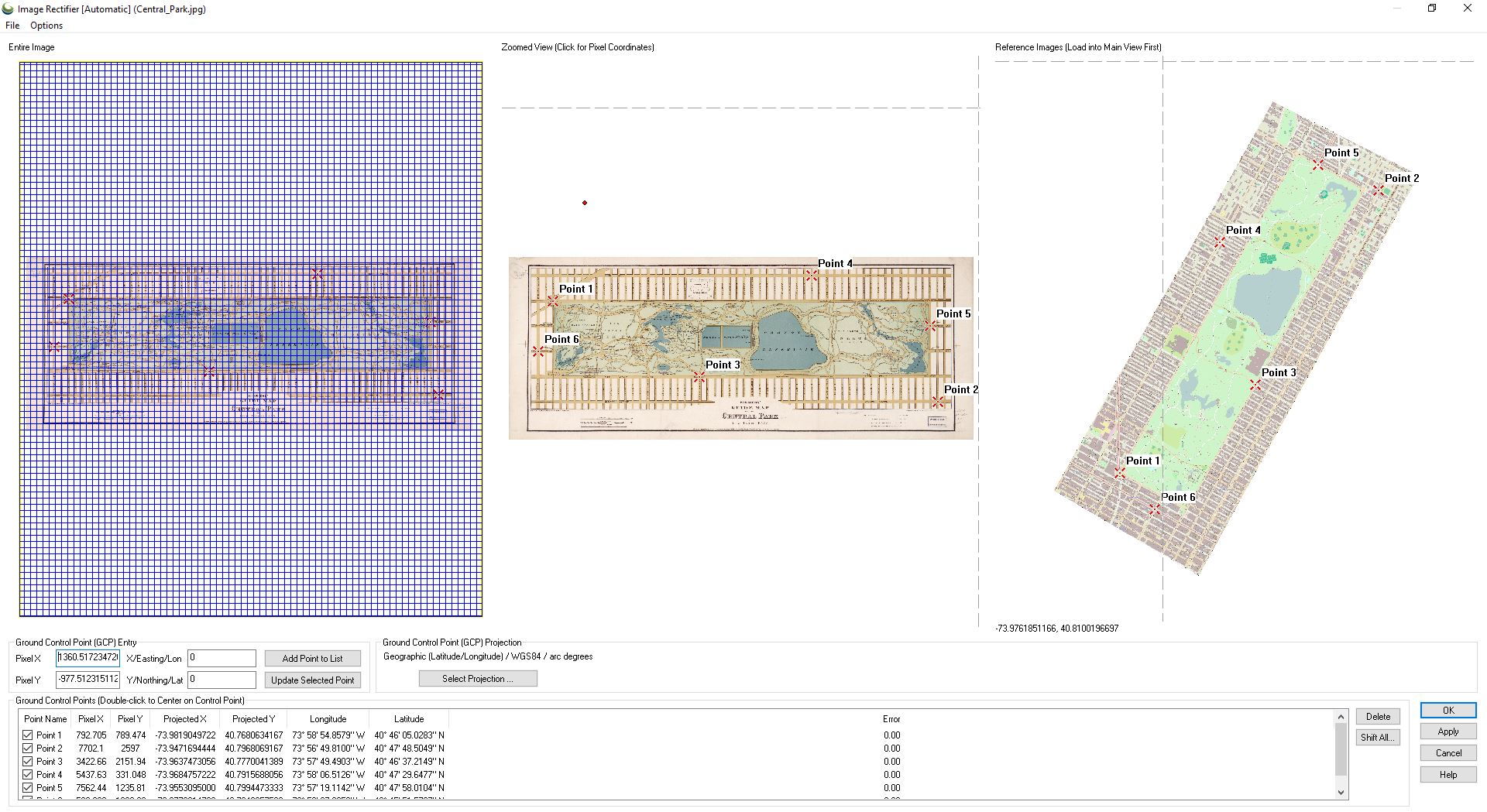 - If the data to be rectified has a coordinate grid on it, such as a scanned USGS DOQQ, those coordinates can be used as the basis of rectification. The location of the point is selected in the Zoomed View, and the real-world coordinate is then manually entered into the Ground Control Point (GCP) Entry field for X/Easting/Lon and Y/Northing/Lat as appropriate .