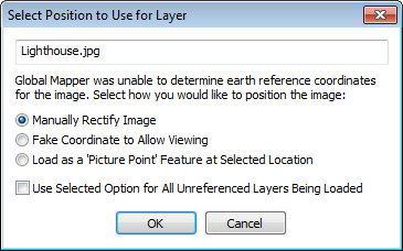 Reference Images - Displays the reference images that you currently have loaded into Global Mapper. Use this section to choose your projection coordinates by clicking.