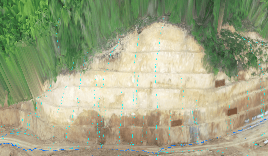 Geospatial analysis in Global Mapper plays a critical role in identifying and mitigating these risks. By analyzing elevation models, watershed boundaries, and surface flow paths, the project team gains a clear understanding of how water moves across the landscape and where it may concentrate during heavy rainfall events. Drone-collected imagery is integrated with terrain and hydrologic data to evaluate vulnerable areas and inform alignment, drainage, and earthwork decisions—helping reduce environmental impact while improving the resilience of the finished roadway.