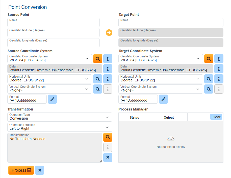 The Point Conversion tool allows single-point calculations of numeric coordinates.