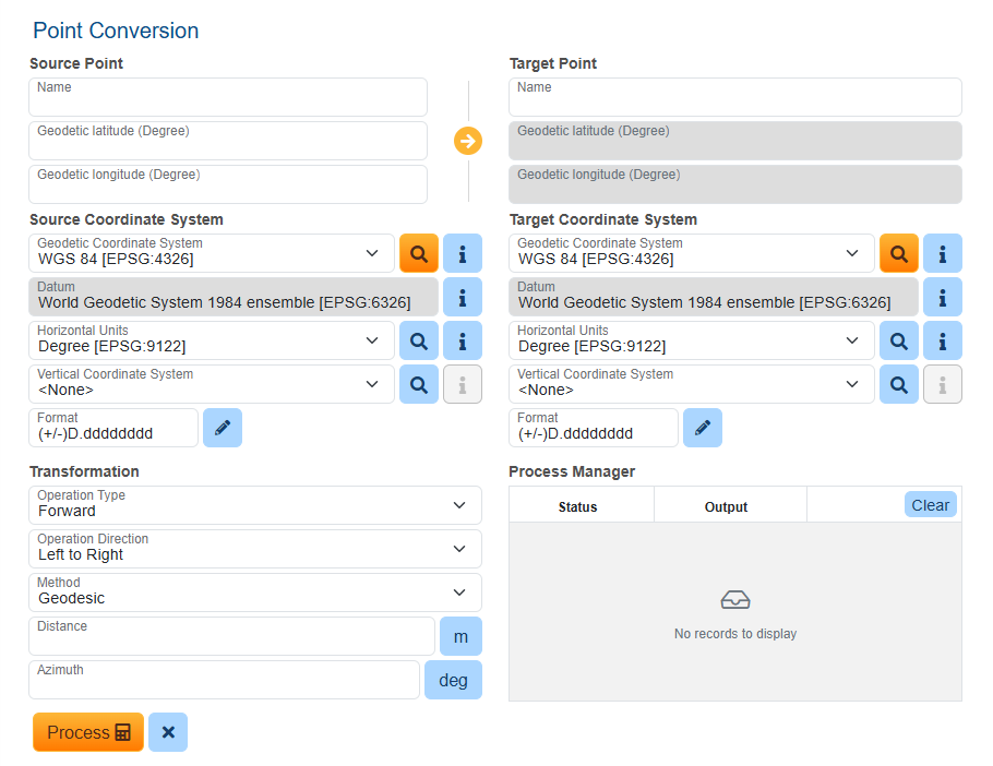 - Click Process to convert the point and populate the Target Point definition fields.