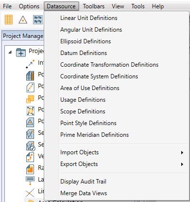 You can extend the Geographic Calculator to support an unlimited number of custom objects. The parameters for each base definition are stored within an XML database file referred to as the Geodetic Datasource, a file named geodata.xml. All user-defined parameters will be stored in a file named custom.xml