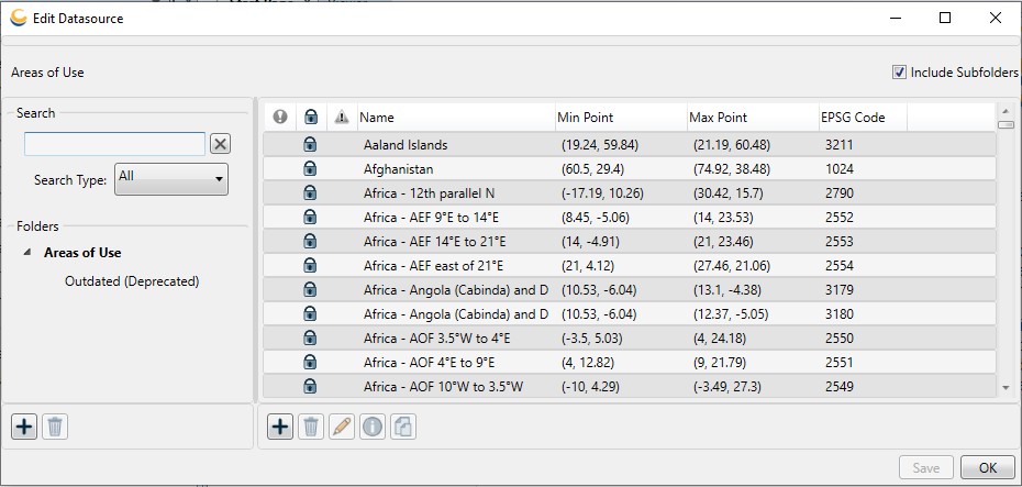 Click OK to close the Edit Datasource dialog, your new Area of Use definition is complete and may be used within the Calculator.