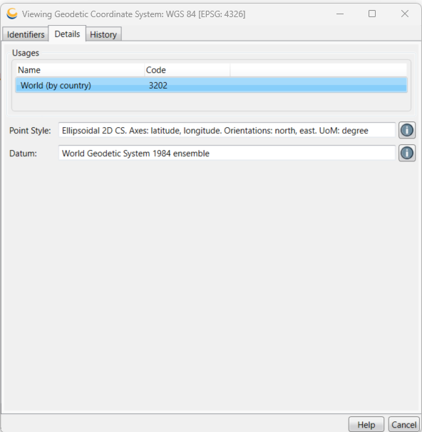found in the Conversion Settings of the job interface and select Info. The Geodetic Coordinate System