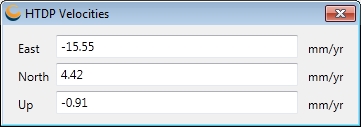 In the Interactive Conversion Job, the HTDP Velocity values may be viewed by right-clicking on the output values in the Coordinate Point Definition field for the transformation output and selecting the 'HTDP Velocity' options.