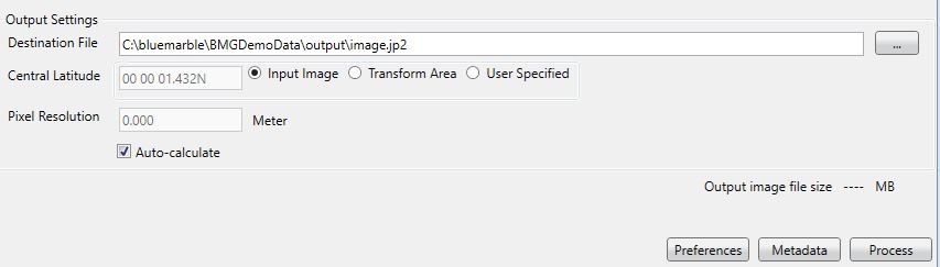 - Transform Area: The central latitude is set to the latitude at the center of the transformation area. This will differ from the Input Image if you set a transform area different from the image extents.
