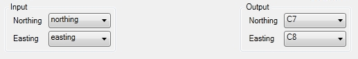 Use the Input and Output fields to select the columns that contain the input, the columns that will receive the output, select the option to 'Add New Columns' to add columns for the Output, default names will be used (C1, C2, etc).