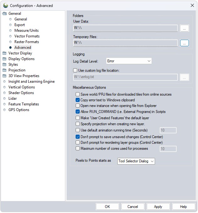 This option allows you to specify the maximum number of cores Global Mapper will use for any of its processing. To enable this option, check the box, and enter the number of cores.