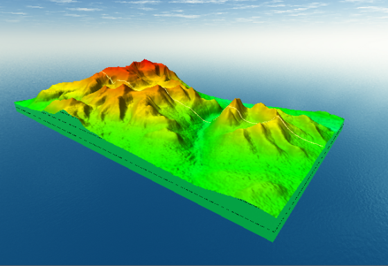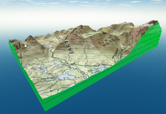 Cutaway views can also be used with draped imagery on top of the terrain or loaded 3D vector features.
