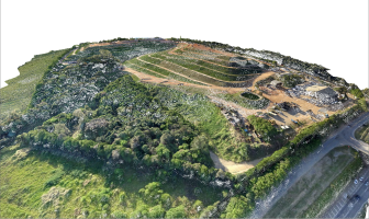 This example of the 3D Viewer shows a 3D Mesh (created from Pixels to Points ®) on top, with the orthoimage that has been created from the mesh underneath it.