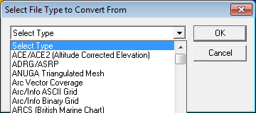 When the tool is selected from the File menu, the user is prompted to select the file type to convert from.
