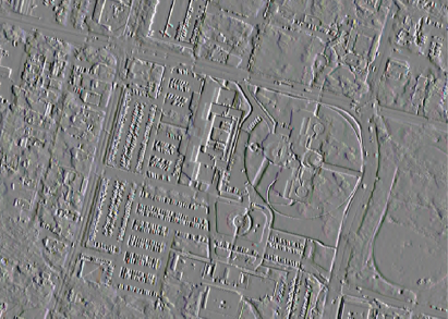 Line Detection- the Line Detection filters (3x3 only) can be used for edge detection similar to the Gradient Filters. These filters accentuate lines oriented in the specified direction ( either horizontal, vertical, or diagonal) while suppressing the others. When used on elevation data the generated layer will display with the gradient shader applied.