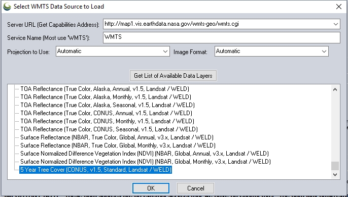 Select WMS Data Source to Load dialog (pictured below) is displayed.