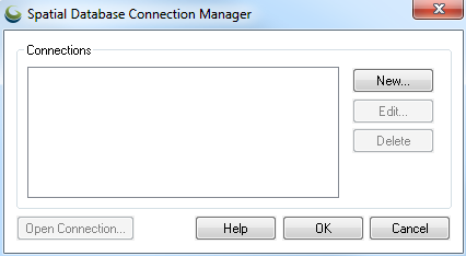 Open the Spatial Database Connection Manager. This can be found in the Tools Menu. Once open, select New.