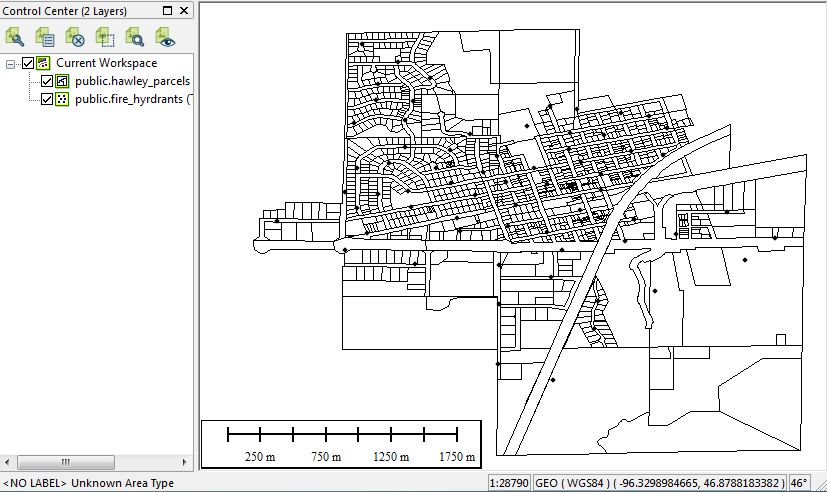 Each table will now display as an individual vector layer within Global Mapper.