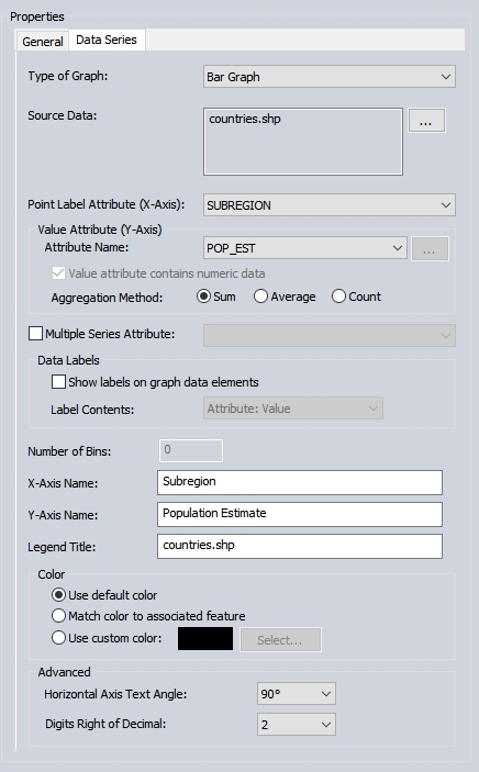 For a basic graph, this is all the information that is needed. To use the Multiple Series Attribute to create a graph with a second level of grouping that shows in the legend, see more details below.