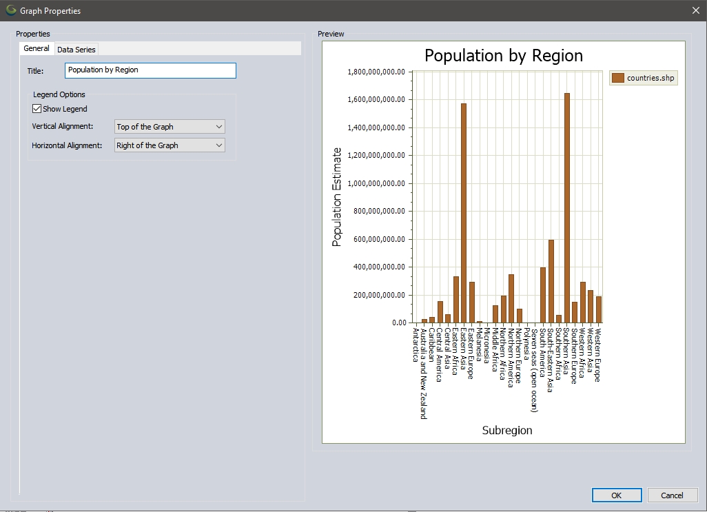 In the case above, the selected feature was China, but now that a Population graph has been created, the same graph template can be used for another feature by selecting that feature with the Info Tool and going to Graphs, then opening the population graph.