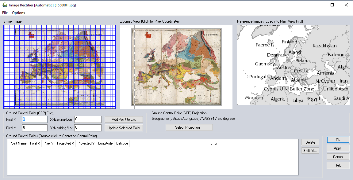- If the data to be rectified has a coordinate grid on it, such as a scanned USGS DOQQ, those coordinates can be used as the basis of rectification. The location of the point is selected in the Zoomed View, and the real-world coordinate is then manually entered into the Ground Control Point (GCP) Entry field for X/Easting/Lon and Y/Northing/Lat as appropriate .