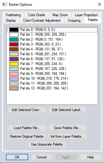 Users can also save the palette to a new file, to share with other users, or load an entirely new palette to use for the layer from an existing .PAL or .CLR file.
