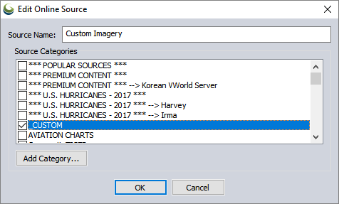 To add custom online source, first determine the source URL, type, and if available the zoom level/ extent of the source.