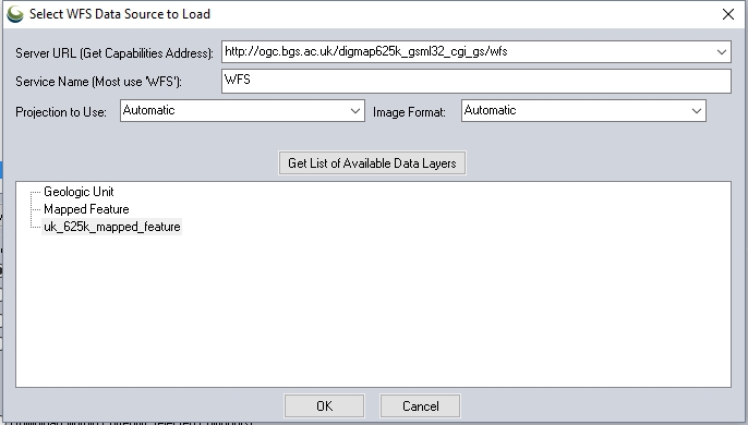 Once the URL has been entered, press the Get List of Available Data Layers button to query the server and populate the data control with the available data layers on that server.