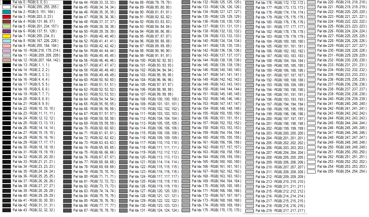 This palette consists of 256 scales of gray ranging from black to white.