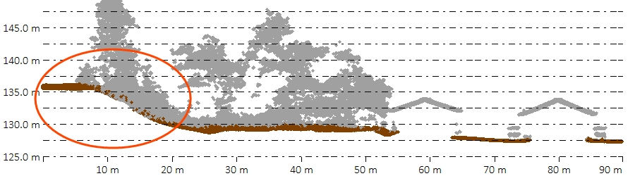 Note that many of the higher points in this case will already be removed by the setting described below in Removal of Likely non-ground points before the curvature deviation is checked.