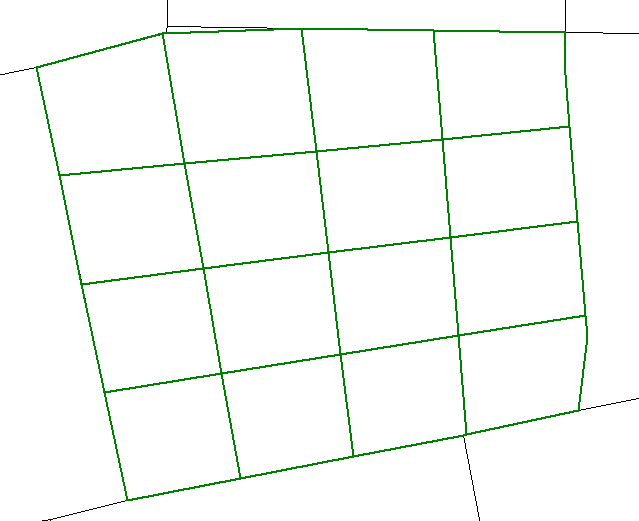 The following image illustrates the result of subdividing the same area without checking the Create Horizontal/ Vertical Subdivisions option. In this case, the lines that define the subdivisions run more or less in the same direction as the sides of the original area.