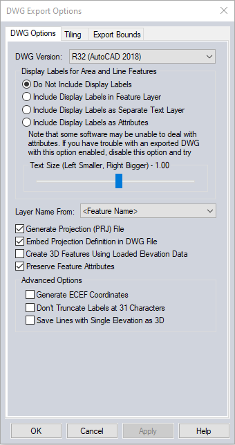 Updated DWG/DXF exports to support using any attribute value as the Layer value rather than just special values like .[Item #25922]Change History