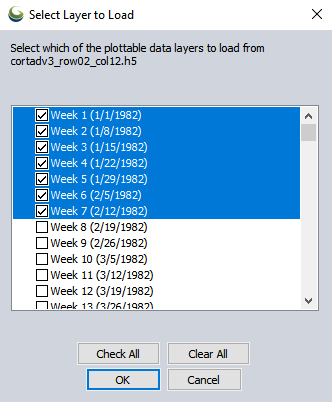 If the selected layer has multiple time slices in a 3rd dimension, there may also be a selection of the time slice, layer, or resolution to load: