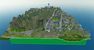 This cutaway view will feature a “wall” along the cutaway that shows the same basic cross section as the main Path Profile window. The wall will show the same Profile graph displayed in the Path Profile window. The profile graph will display corresponding to the terrain, and the cutaway will follow the trajectory of the first segment of the profile line.
