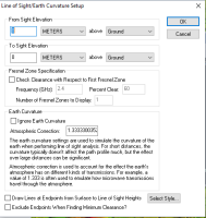 This brings up the Setup Line of Sight/Earth Curvature dialog (pictured below), which allows the user to configure a line of sight calculation along the selected path.