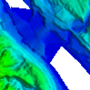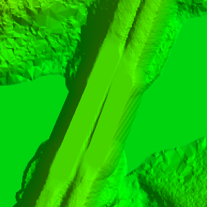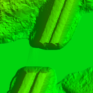 The fill gaps operation was used to fill in a missing part of the terrain where the river bed is in the below images.