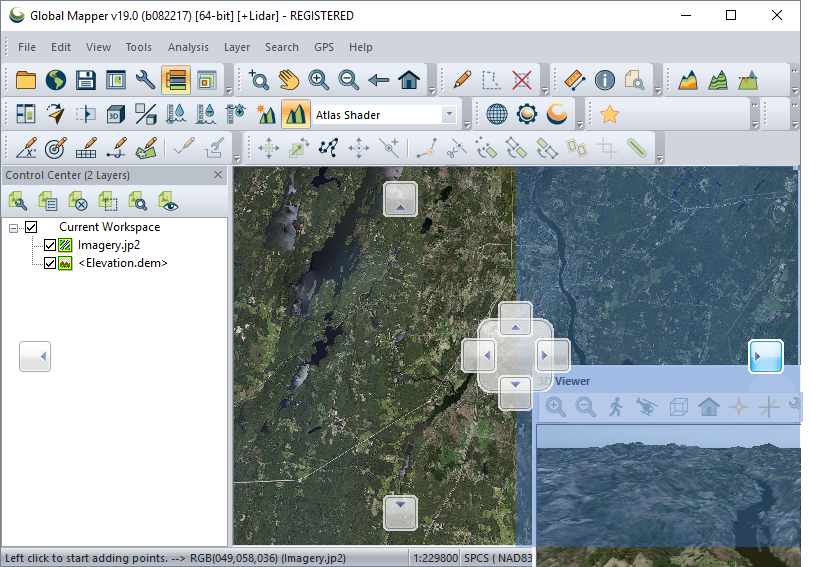 Many of the common floating windows in Global Mapper may be docked into separate panes within the main application window. Docking may also include tabbed panes.