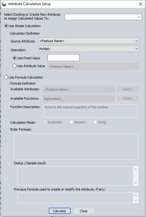 This allows you to create a new attribute value (or update an existing one) by copying the value of some attribute, performing a mathematical operation either between two attributes or an attribute and some number, or to append some text string to a value when Simple Calculation is selected.