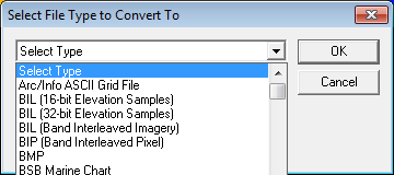 When the tool is selected from the File menu, the user is prompted to select the file type to convert from.