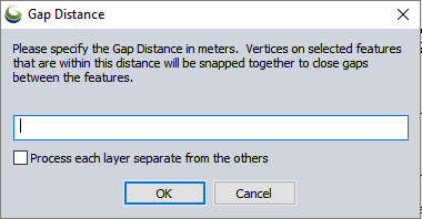 In the Gap Distance dialog enter the distance at which to snap vertices of nearby features together. Press OK to complete the operation.