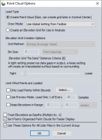 Create an Elevation Grid for Use in Analysis - Create an elevation grid from the selected lidar data upon load, rather than drawing the data as a point cloud. Selecting this option activates the Elevation Grid Creation Options.