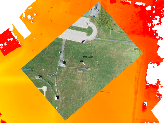 Specify the point cloud or terrain layer to use during the orthorectification process. This will remove the effects of relief in the terrain. It is also necessary to correct parts of the image that are oblique in data that is close to the ground (such as drone collected imagery). For this reason it is recommended to use a detailed digital surface model (DSM), which includes the buildings and trees.