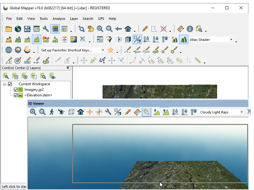 Many of the common floating windows in Global Mapper may be docked into separate panes within the main application window. Docking may also include tabbed panes.