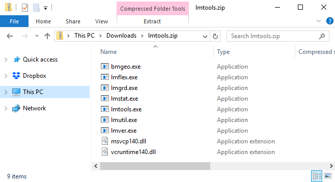 Unzip the folder to a chosen location on the computer that will host the license server. This example will use the path C:\lmtools .