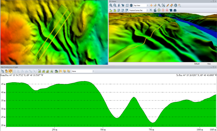 Parallel and Perpendicular Path Profiles are features of the Path Profile tool that provide the ability to look at subsections of the path profile. These additional profiles function similarly to one another, but they are differentiated by their perspectives being either parallel or perpendicular to the original path profile. Only one type of perspective profile can be enabled at a time.