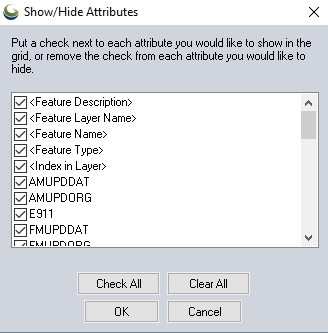 Use the Check All and Clear All buttons to quickly select or deselect all attribute.