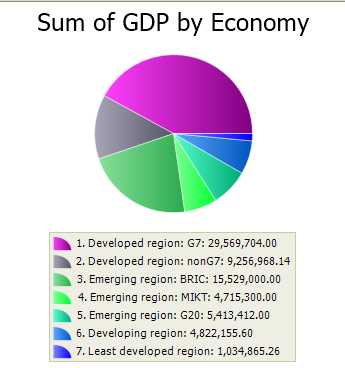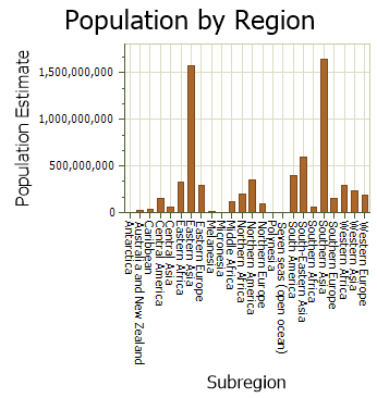 Aggregation Method - This defines how the Point Label aggregates the values (Value attribute). The options are Sum, Average, or Count. For example in the sample above of Population by Region, population is summed by region. Choosing Average would give the average population of the countries in each region. Count would provide the number of countries that contain a value for population. Features with empty / null values would not be included in the count.