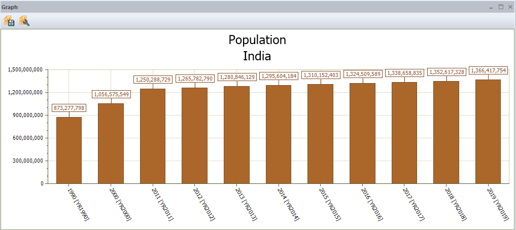 In the case above, the selected feature was China, but now that a Population graph has been created, the same graph template can be used for another feature by selecting that feature with the Info Tool and going to Graphs, then opening the population graph.