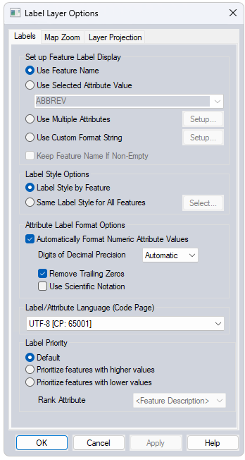 Note: For more information about all of the options available in the Layers tab of the Vector Options window, please see the Labels Tab page.