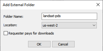 Use this option to connect to an AWS folder, such as a public folder. This might include open data listed on https://registry.opendata.aws/ or https://registry.opendata.aws/tag/geospatial/ such as USGS Lidar, Sentinel 2, Landsat 8, NOAA, etc.