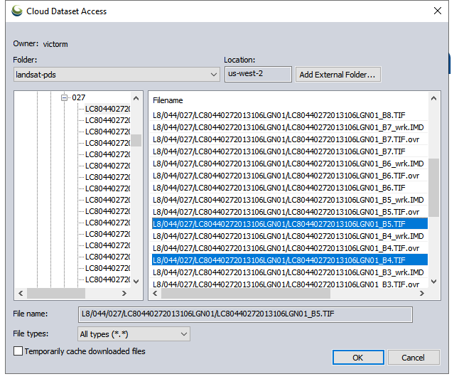 The Open Cloud Dataset option allows data to be imported from cloud servers. The currently supported format is AWS Amazon S3*. In order to connect to AWS, including public folders, it is necessary to have an AWS account. See https://aws.amazon.com/