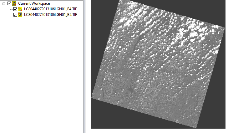 - The files will automatically download to the selected folder and open in Global Mapper. With this data, a load prompt appeared and the imagery data type was chosen for these single band images.