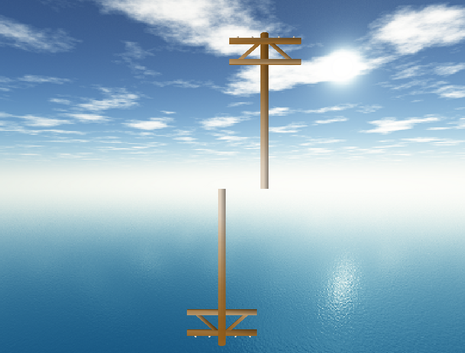 In this example, the tower on the left was loaded and appears as if lying face down from the front view (CTRL+SHIFT+F). The top of the model is facing the camera. Performing a Z-up conversion flips the model upright, as in the model on the right side.